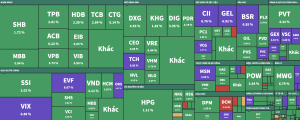 Bên cạnh đó, cổ phiếu hệ sinh thái Gelex cũng bứt phá ấn tượng. GEE – GEXX – GEL kéo trần tím lịm. Diễn biến diễn ra tương tự đối với VSC và VIX.
